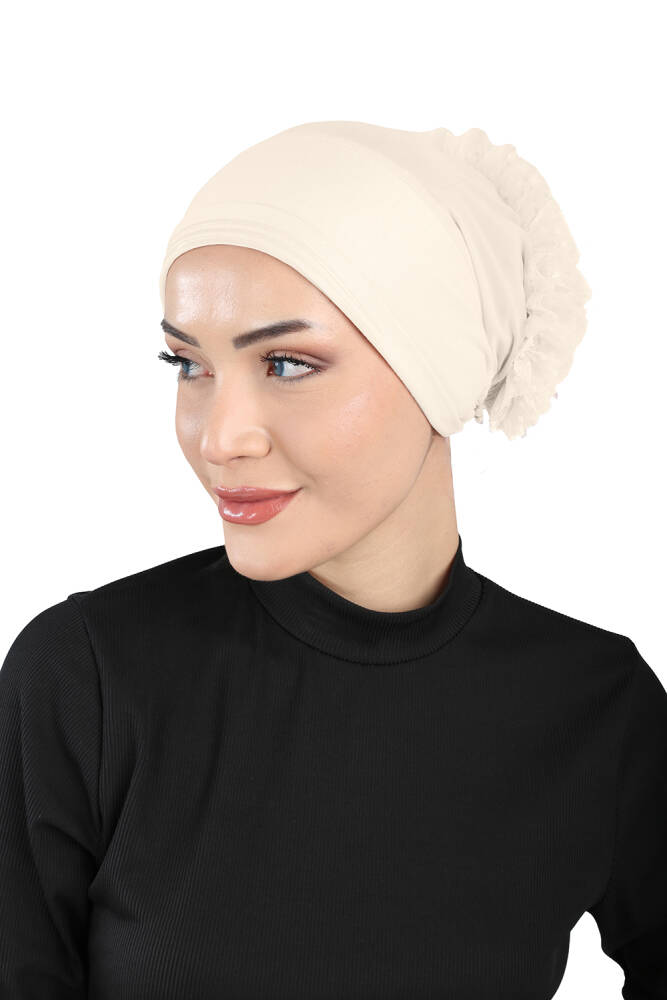 Topuzlu boneler, arka kısmındaki özel alan sayesinde saçlarınızı rahatça toplamanızı sağlar. Kaymaz ve tam kapatıcı yapısıyla gün boyu konfor sunarken, şık duruşuyla her kombine uyum sağlar. Spor yaparken pratiklik, günlük kullanımda ise zarif bir görünüm elde etmenize yardımcı olur.